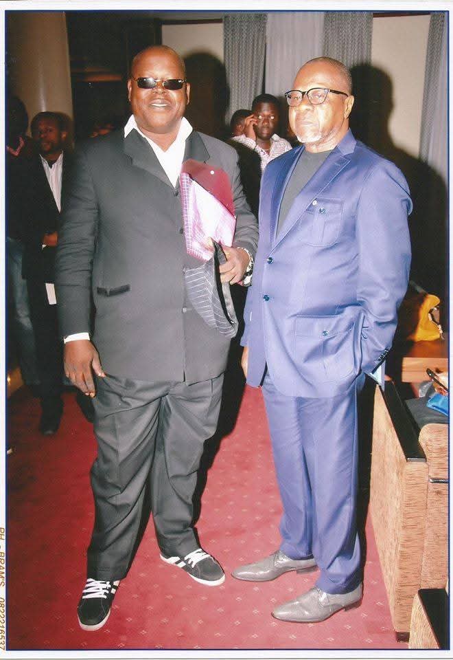 Jean-Paul Brigode ILOPI Bokanga et le Grand Mayas Papa Wemba, photo emblématique prise à l’hôtel Memling après une conférence sur la musique et paix, quelque temps avant la disparition du grand chanteur. Ce dernier fut alirs élevé à titre posthume à la dignité de Ministre Universel de la paix par le Culpac, l’organisation internationale ayant organisé ladite conférence.