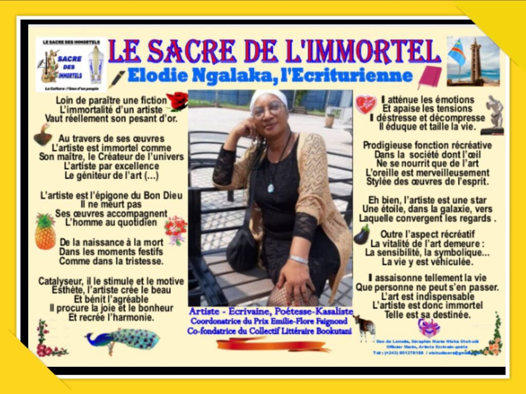 La dernière lauréate du Sacre de l’Immortel est donc Mme Yolande Elebe Ma Ndembo, poétesse engagée, ministre de la Culture et présidente de plusieurs plateformes d’écrivaines.