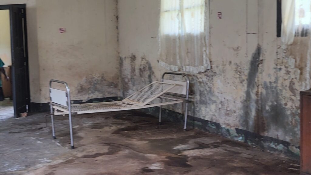 Ancienne salle d’hospitalisation du Centre de santé de Nteva.ici , au delà de la crasse, hommes et femmes partageaient le même local.
