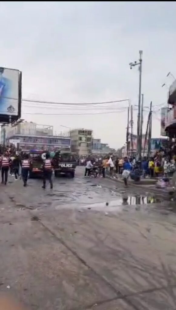 Aux environs de 9 h 00, des hommes armés vont pénétrer sans crier gare dans l’agence de la Rawbank, à la « Place Victoire ». Pendant qu’ils étaient en train d’opérer leurs sales besognes , un véhicule (Van) de la police nationale passera par là, dans le cadre de sa ronde de routine pour le maintien de l’ordre public. Il était 9 h 30 lorsque les guetteurs externes de la bande mafieuse, se croyant repérés, vont ouvrir le feu sur les patrouilleurs de la police nationale.