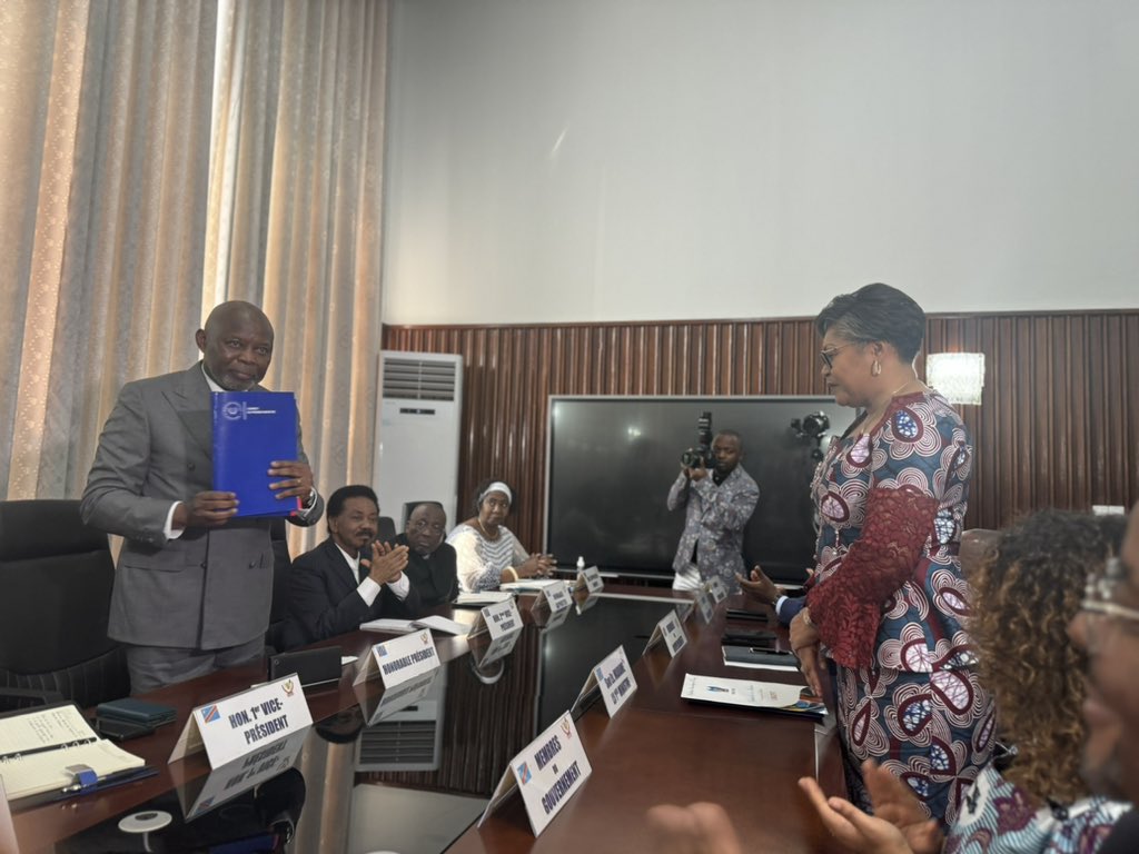 Ça y est! Le programme d’action du gouvernement SUMINWA est déjà sur la table de Vital KAMERHE, Président de l’Assemblée Nationale. La Première Ministre a déposé le samedi 08 juin 2024, le programme de son gouvernement. A en croire le Ministre de la communication et Médias , Patrick Muyaya, en déposant son projet, la première ministre Judith SUMUNWA porte les actions que son équipe va mener sur Six engagements de la politique du Président de la République, Felix-Antoine Tshisekedi Tshilombo. Il a fixé à l’occasion que, le mardi 11 juin 2024, ce programme sera soumis à la séance plénière de l’Assemblée Nationale pour un débat qui va se solder par l’investiture du Gouvernement du second mandat du président de la République, Félix-Antoine TSHISEKEDI TSHILOMBO. Le programme du gouvernement Judith SUMUNWA, se focalise notamment sur le social du peuple, les infrastructures de base, l’emploi et beaucoup d’autres,